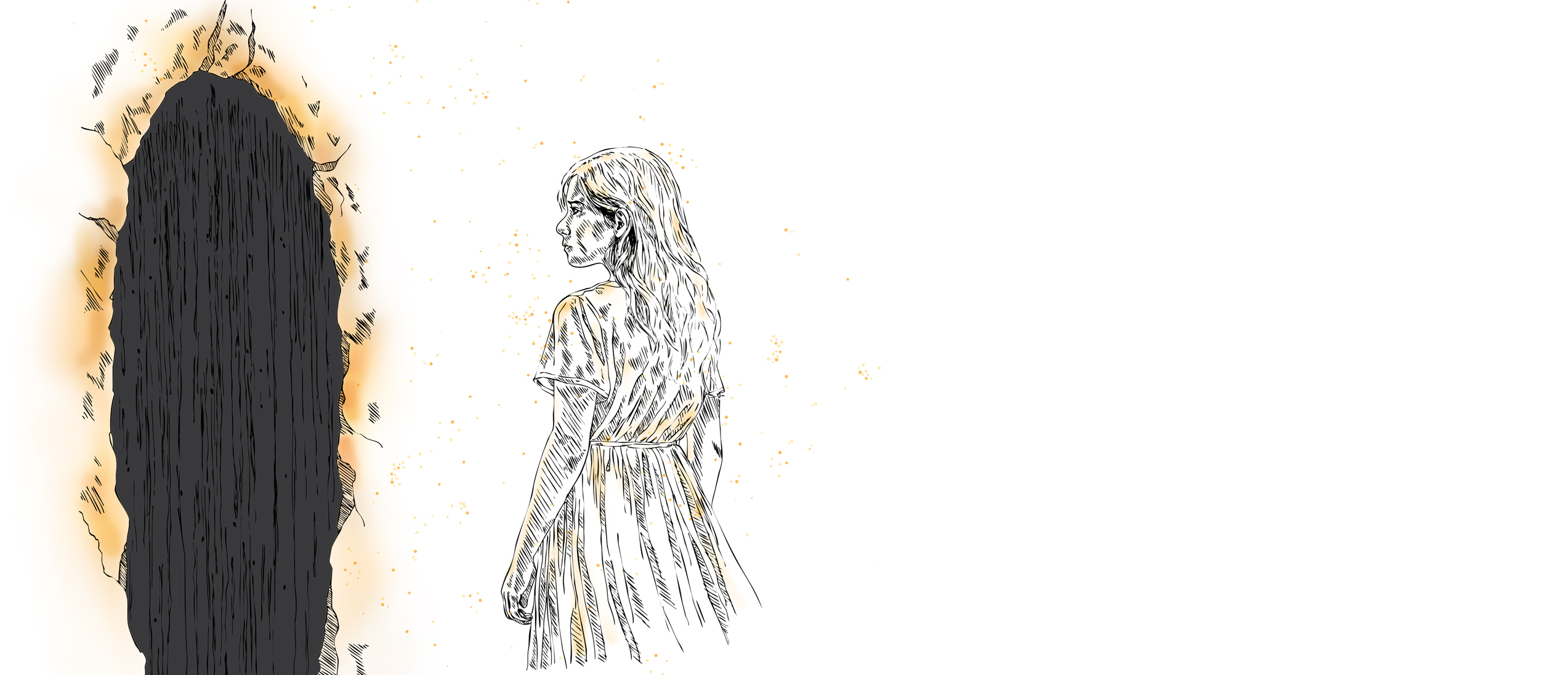 She was holding the round, copper coloured vessel tightly in her small hands. She was barefoot, walking slowly, cautiously. Do not spill it. Just don’t. As if in slow motion, she lifted her foot and moved it slightly forwards in the darkness. With the ball of her foot, she hit something cold, small, and sharp. She looked down. The floor was dusty, and in the gloomy, sparse light, it was difficult to see: There were dozens of shiny metal pieces lying around. Scattered everywhere, one really had to be careful not to step on them. She was, however, used to them. They were gears, and they had always been there. They belonged to this world. This narrow, sinister, dusty flat. Another thing that belonged here were the vines. Well, they actually weren’t real vines, but she didn’t know what else to call them. They seemed like black bramble climbing up the walls. At a closer look, though, it became apparent that they were not solid or tangible. Uncertain if it was liquid or gas, maybe some sort of smoke? Impenetrable, shadowy, thick, jagged tendrils, winding up all vertical surfaces, accumulating in the corners like spider webs and obscuring the dirty windows, which let very little light pass through to begin with – the outside world seemed to linger in constant twilight. Everything in here was cloaked in this tangle of black lines, which continually emitted a quiet, ominous whisper. Most often, she could not understand any of the jumbled words hissed from all corners. Sometimes, however, sometimes it got loud. Whenever that happened, she was forced to hold completely still and cling to her vessel even more tightly, so it would not overflow. And the whispering would grow into a storm of cries, of incessant jabbering, of blared words, buzzing around her head and thundering in her ears, telling her she wasn’t welcome here. Telling her she was destroying everything in here. Telling her she was supposed to leave. But she couldn‘t have left. She did not know how. The world inside these walls was everything she knew. And even if she had been able to, she wasn’t allowed to go. She had to stay. She had to help here. And anyway, if doors were closed in here, they usually remained so. She herself had never managed to open a door.